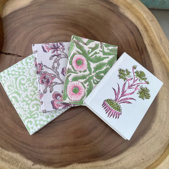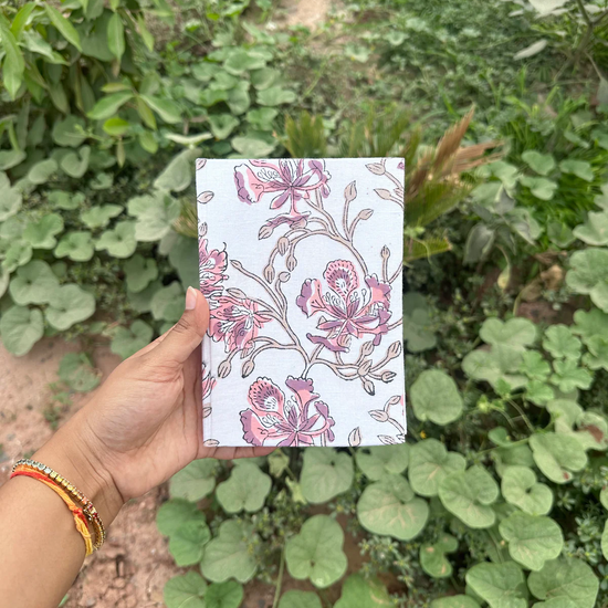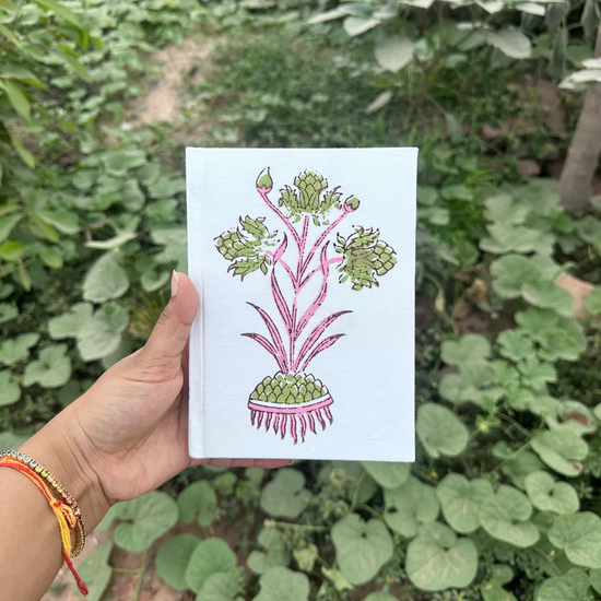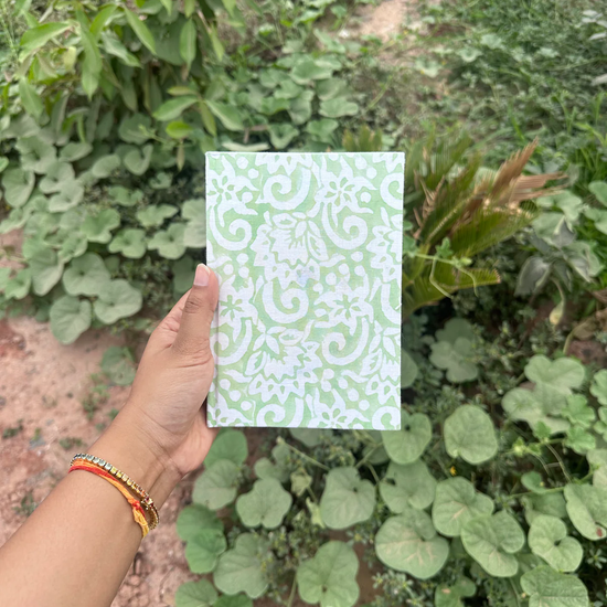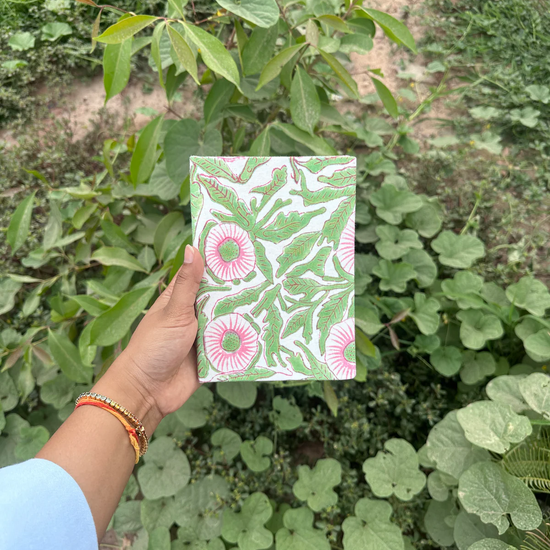 Our block-printed diaries are hand-bound, wrapped in soft cotton fabric, and stamped using traditional wooden blocks — each one a small story in your hands. Made in limited batches
