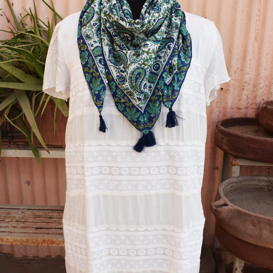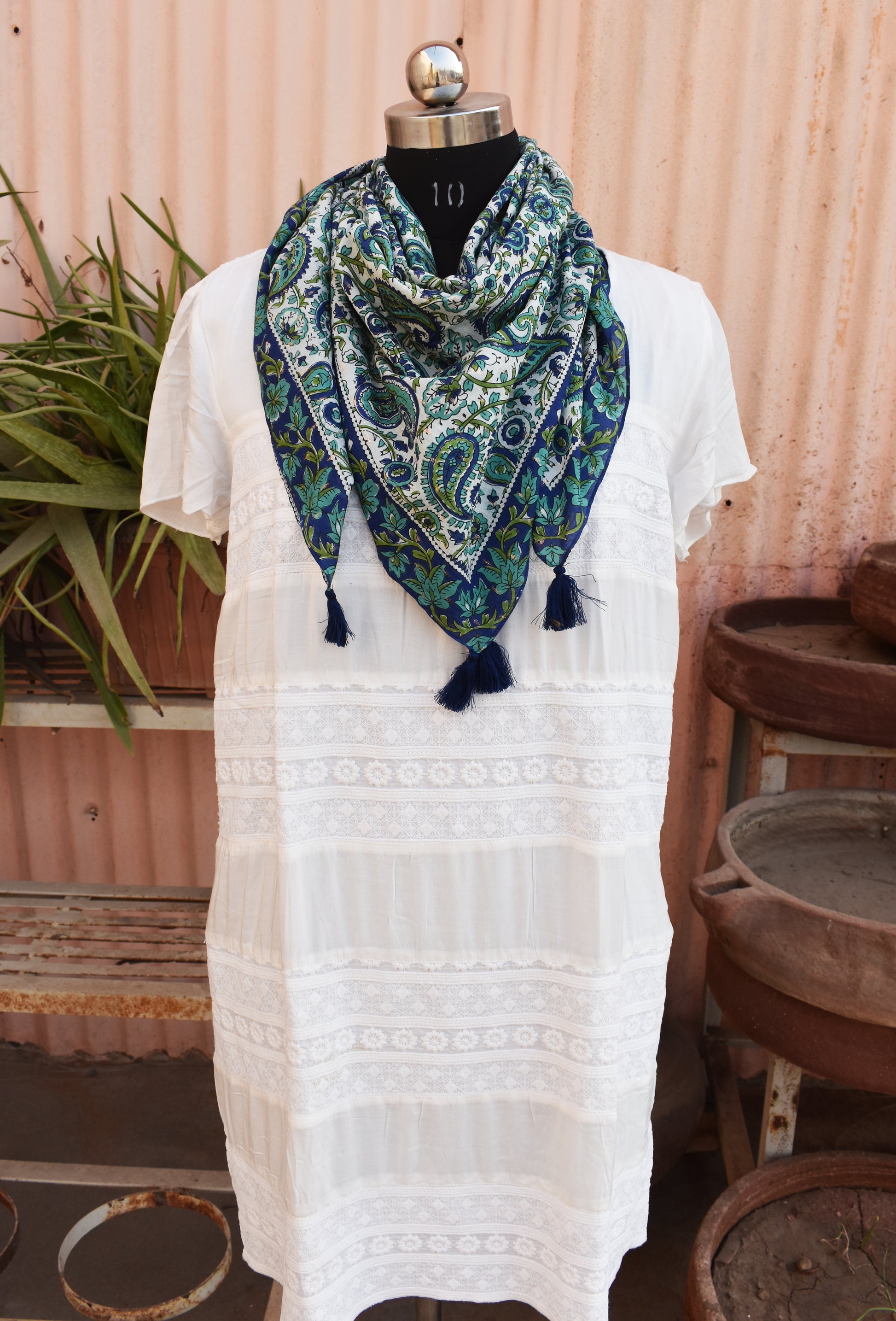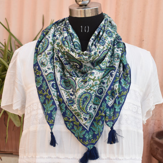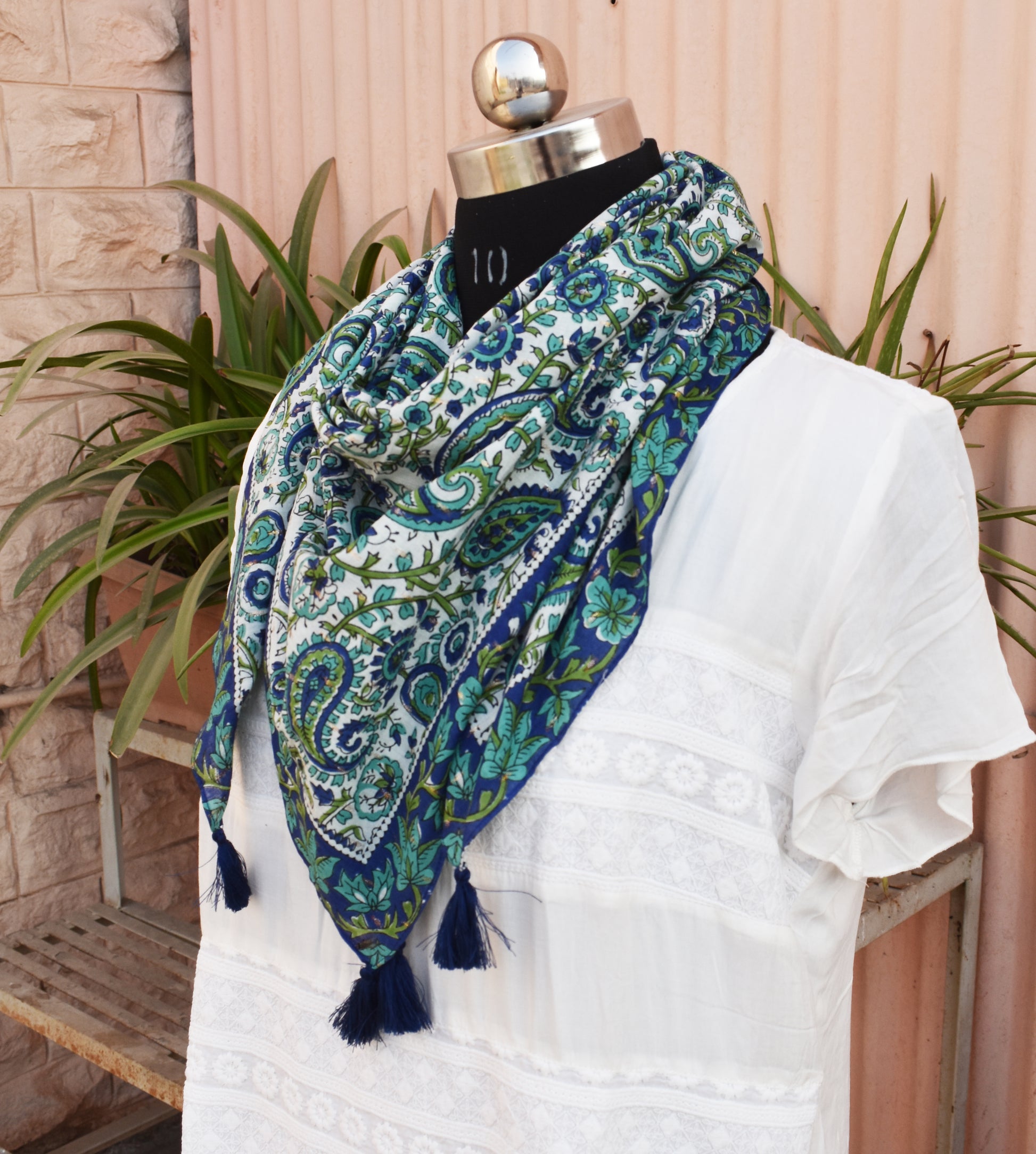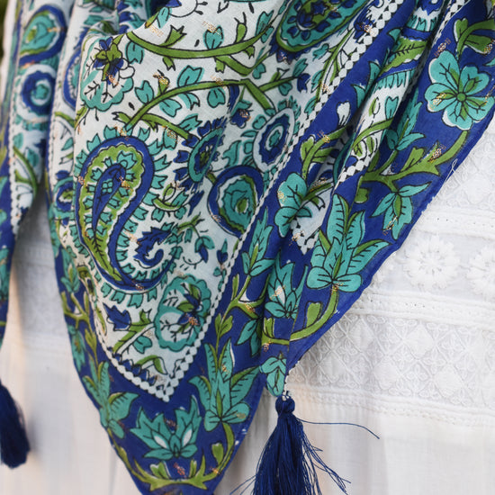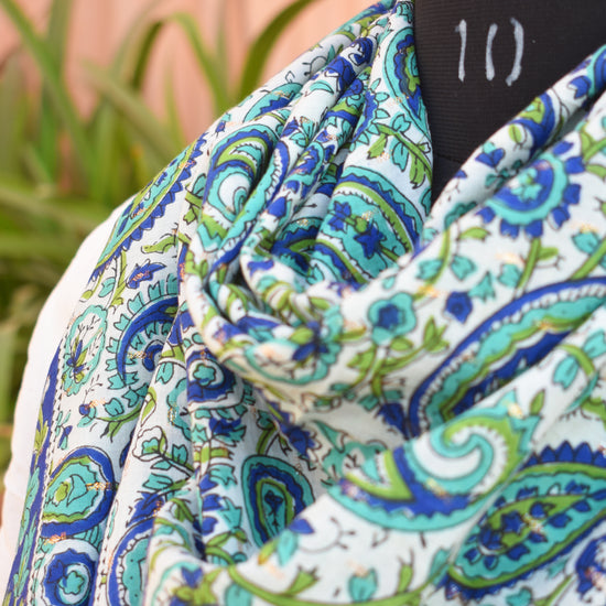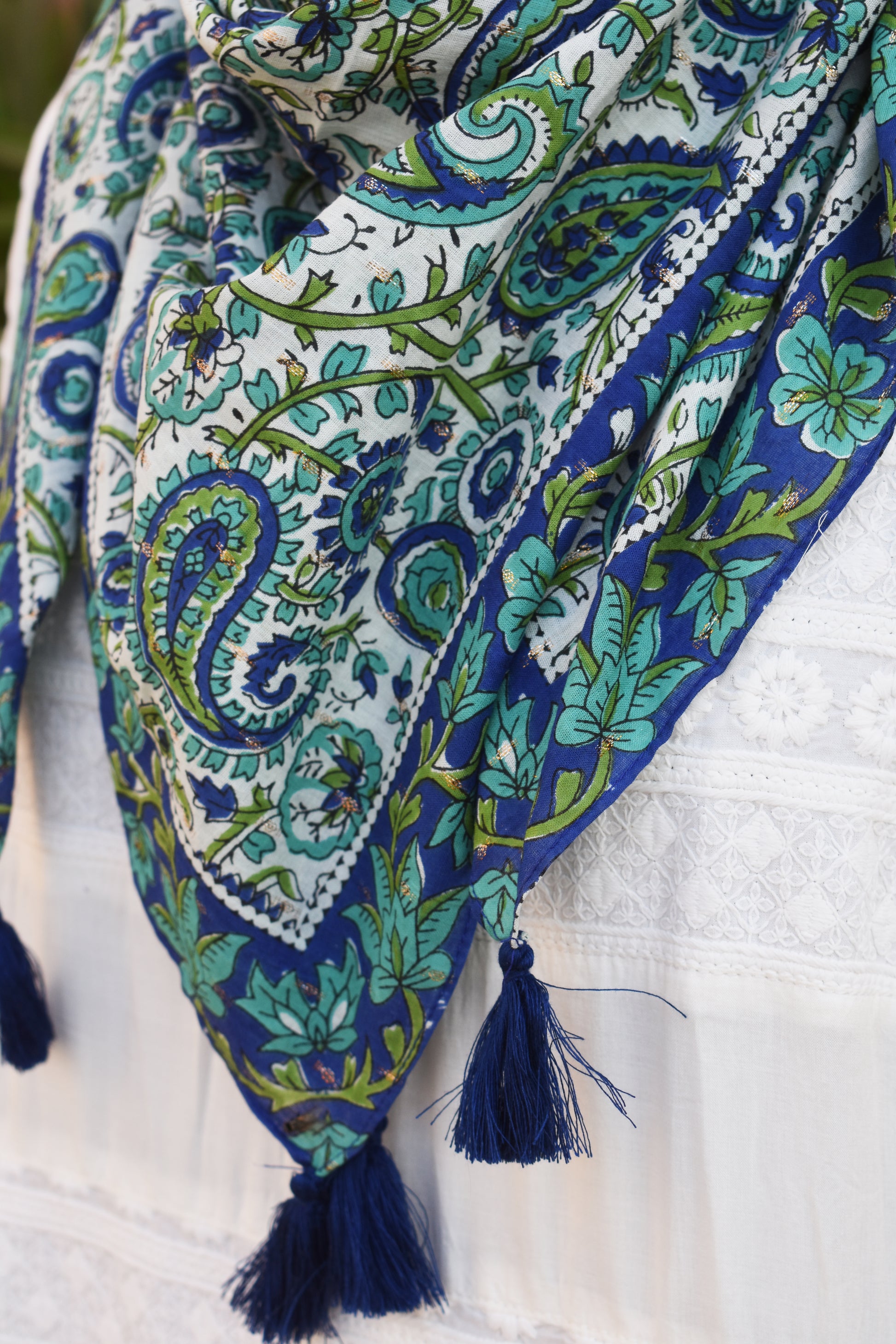 The Blue Paisley Scarf brings a rich tone and soft touch to your accessory collection. Made from lightweight voile, it sits comfortably on the skin and offers effortless drape. The 100×180 cm length gives you flexibility to wear it as a stole, headscarf, shawl, or wrap.