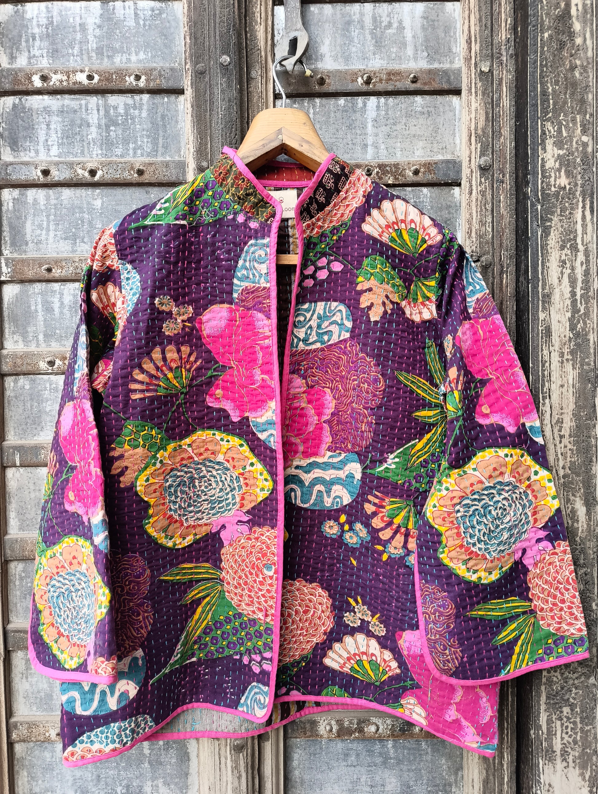 Each jacket is crafted using layered cotton fabric and detailed with hand kantha stitches, giving it texture, warmth, and a unique personality. The bold colors and playful prints make every piece one of a kind, perfect for those who love expressive, boho fashion.