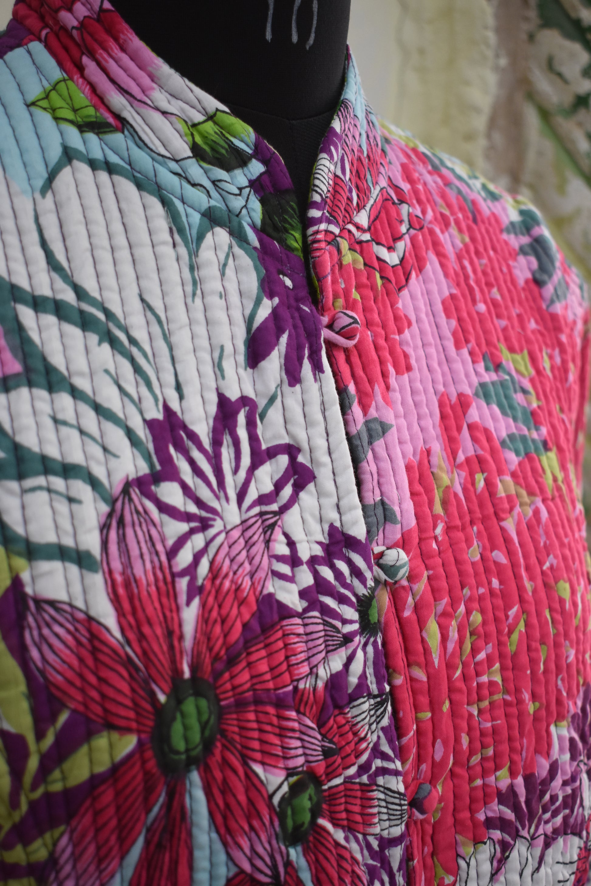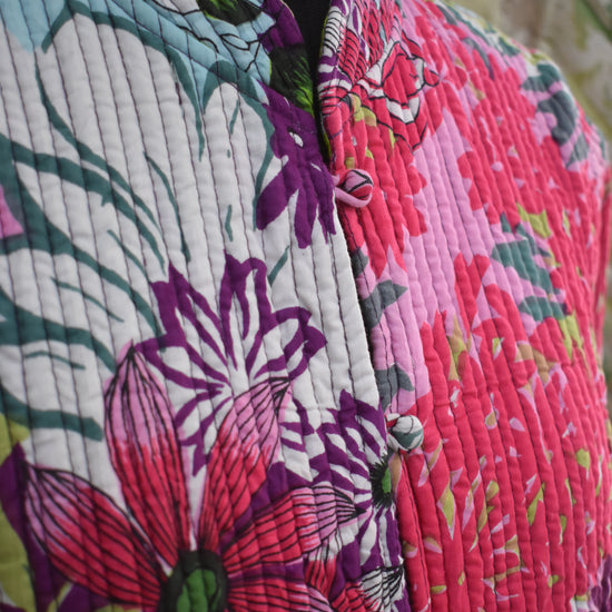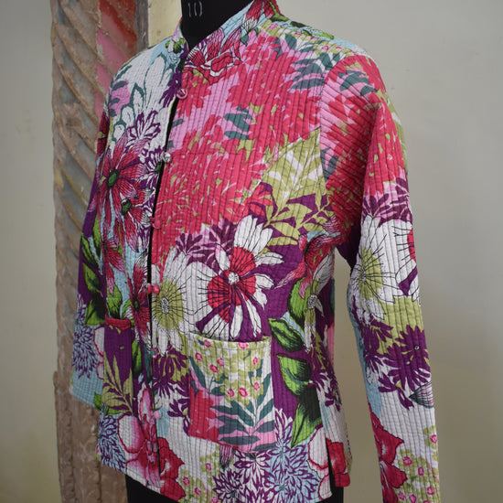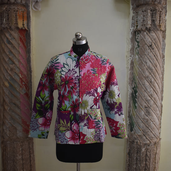 This SangaScreen DualDesign Jacket blends modern screen printing with classic Sanganeri-style patterns on pure cotton fabric. Filled with soft cotton for added comfort, it is designed to be fully reversible—offering two beautifully contrasting looks in one. Perfect for effortless layering, everyday wear, and lovers of artisan-inspired fashion.