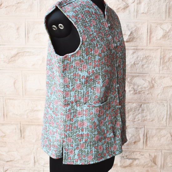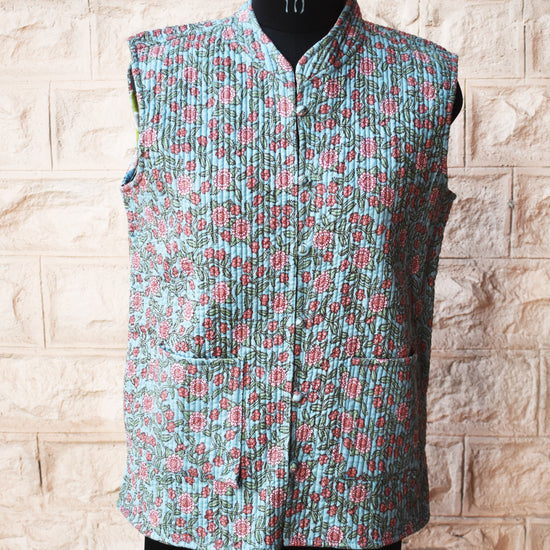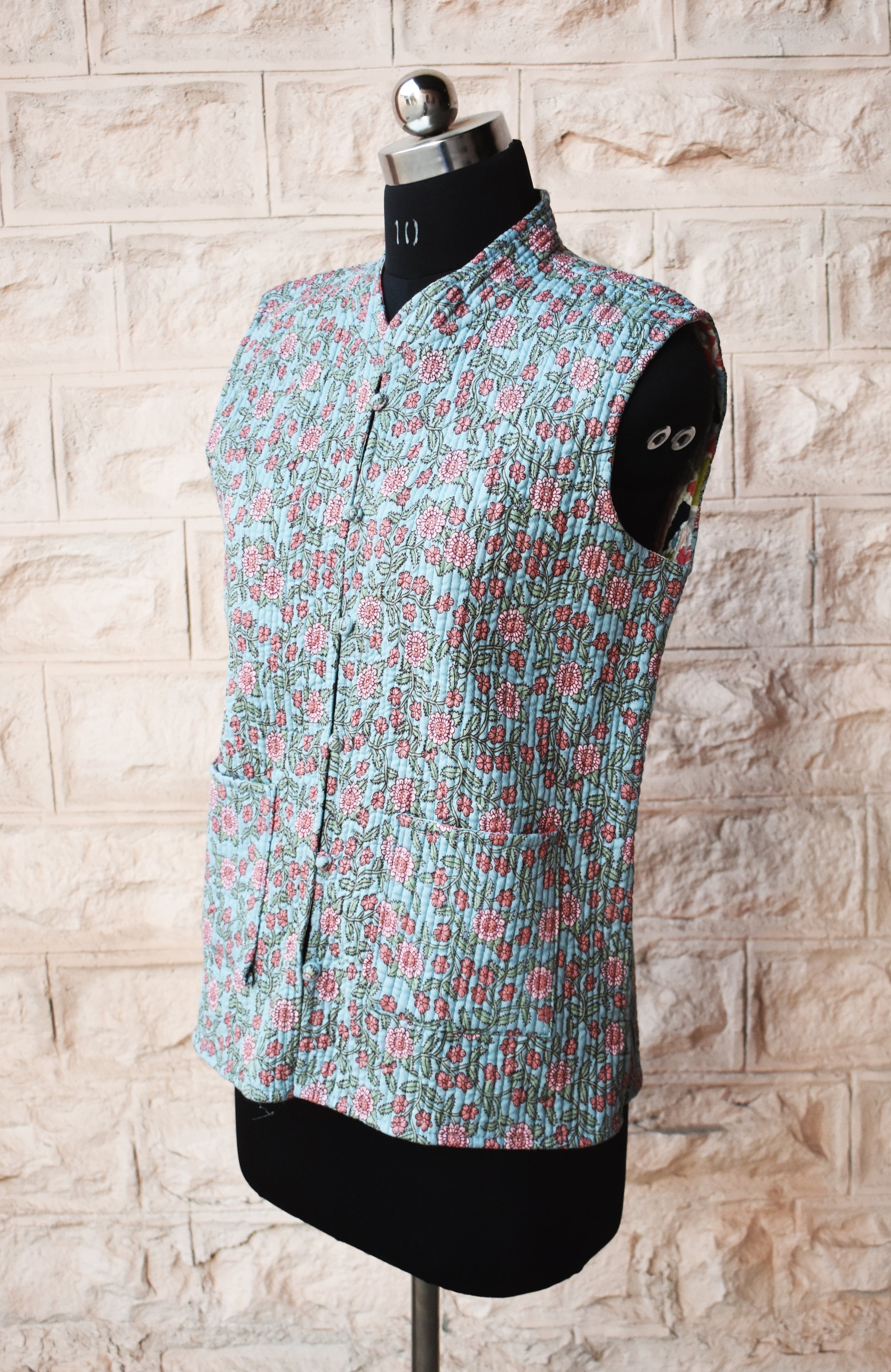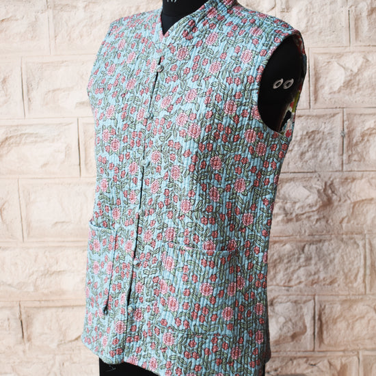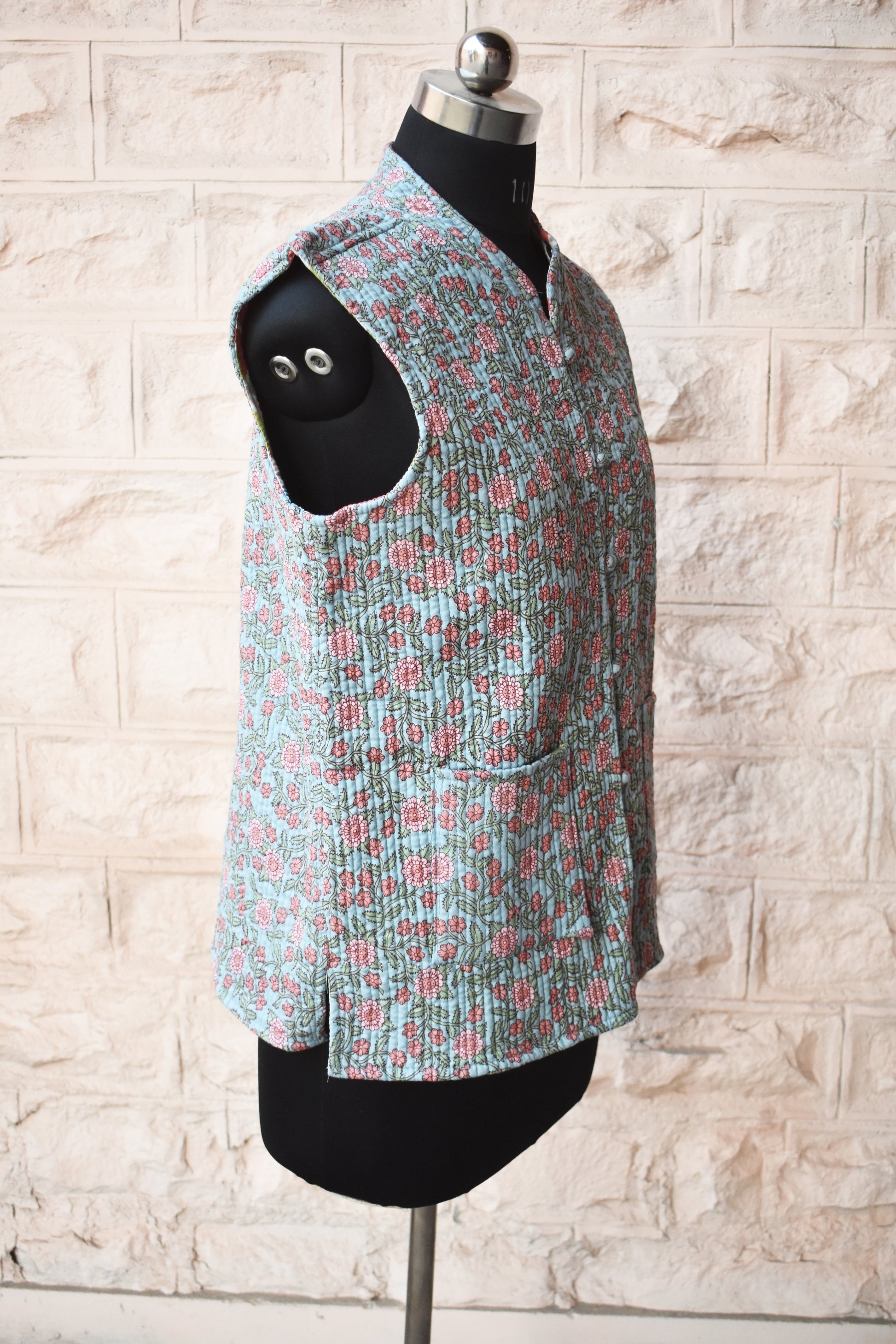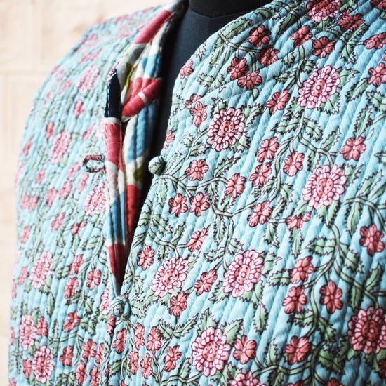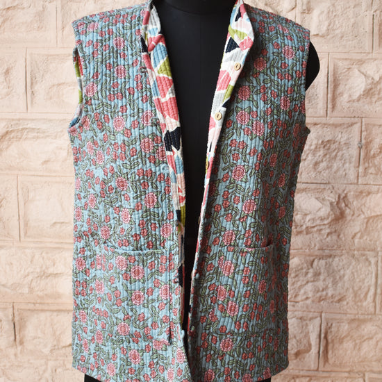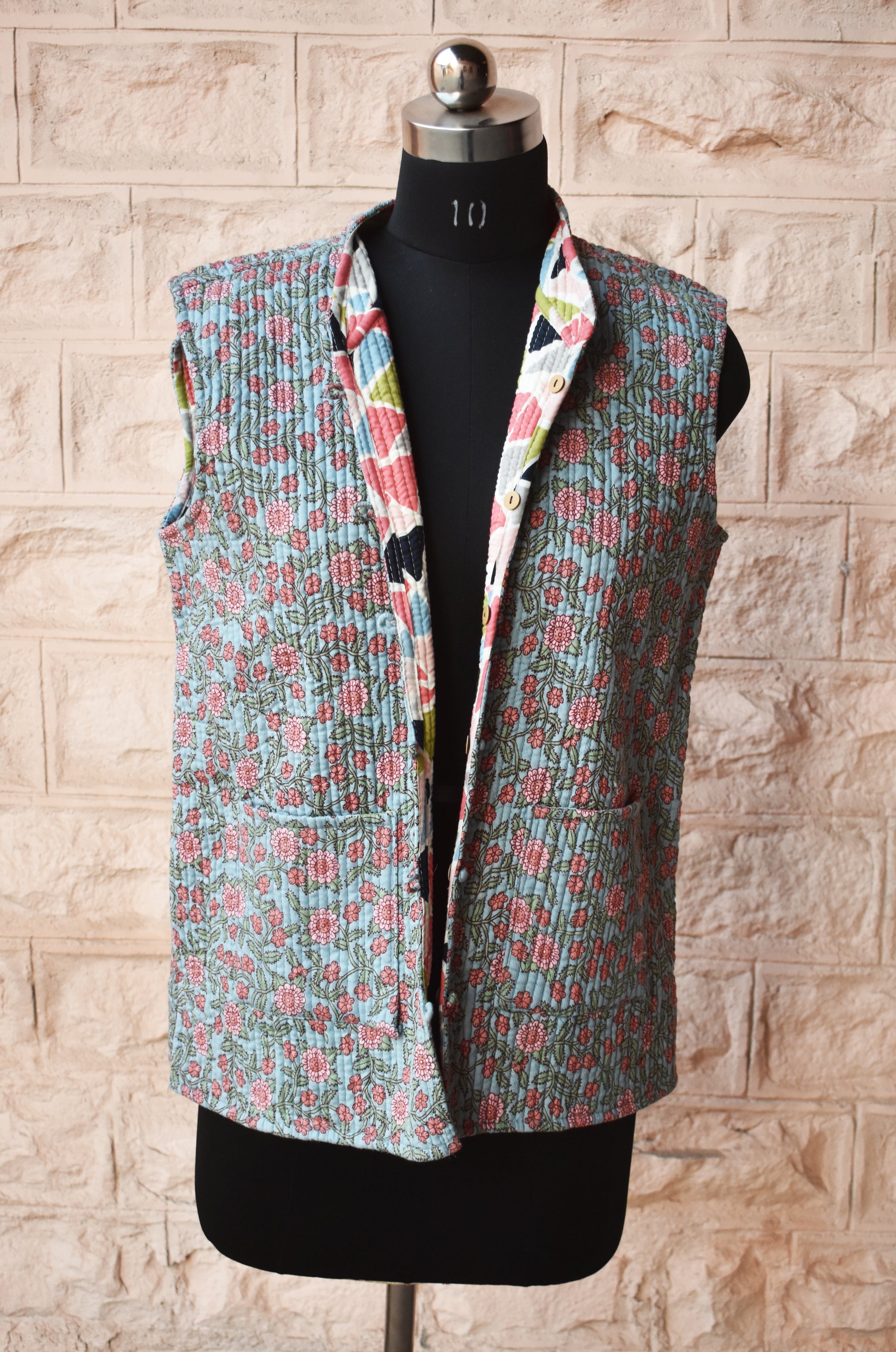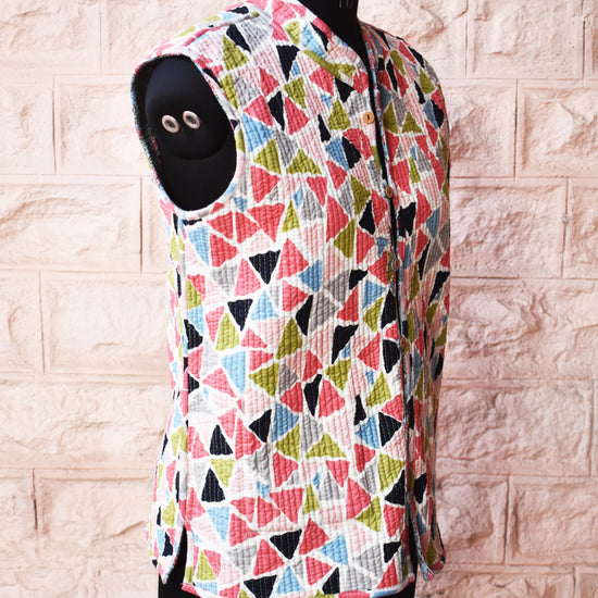 The SangaShapes TwinSide Quilted Wear blends classic Sanganeri-style prints with contemporary geometric screen designs on pure cotton fabric. Filled with soft pure cotton for a cozy, quilted feel, it offers warmth without compromising breathability. Its fully reversible construction provides two uniquely stylish looks in one—perfect for everyday wear, travel, and artistic layering.